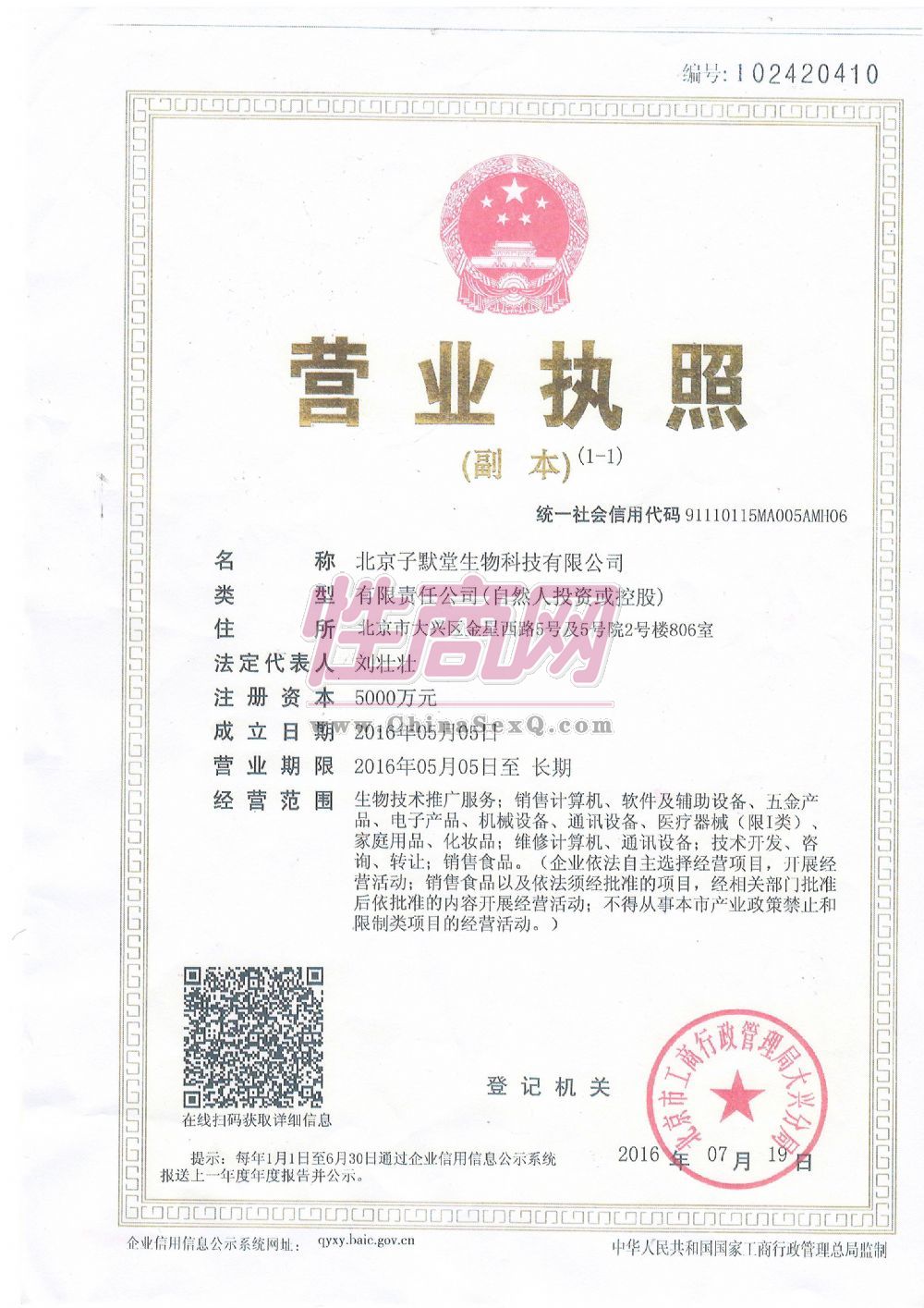 - 公司资质:工商营业执照