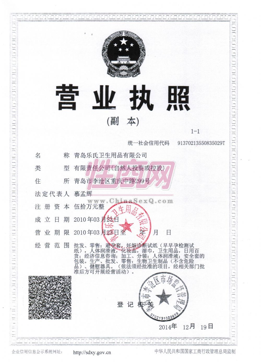 青岛乐氏卫生用品有限公司成立于2010年3月23日,主营:避孕药具、女用清洁湿巾、安全套、男用喷剂、耐氏等产品。 公司简介