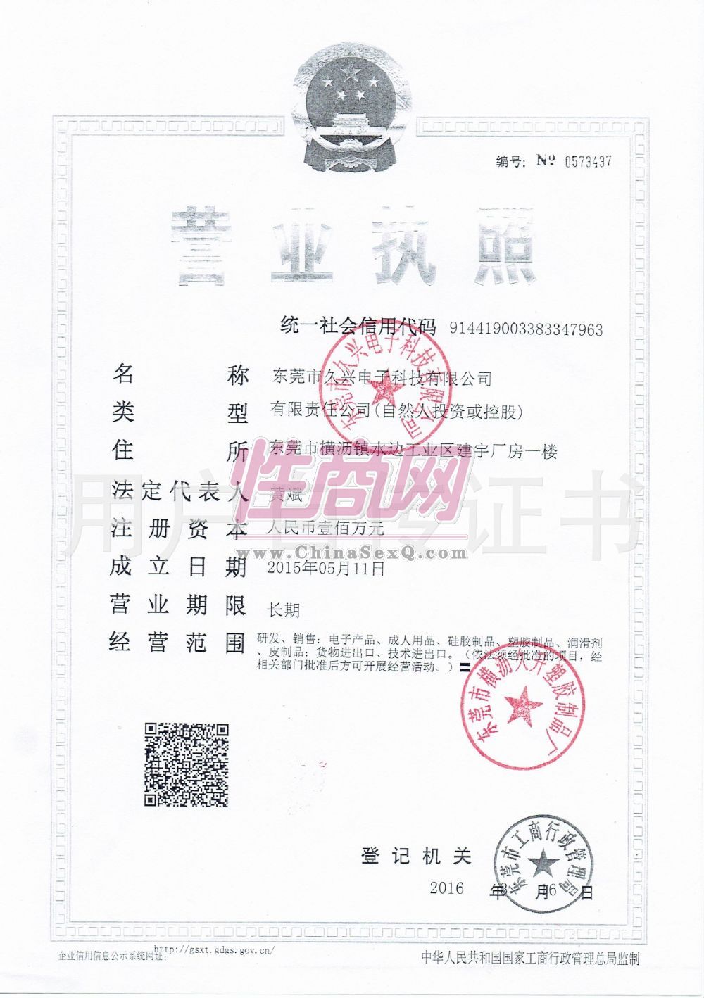 - 公司资质:工商营业执照