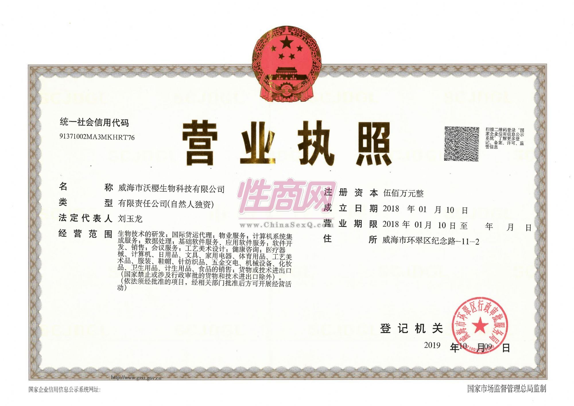 - 公司资质:工商营业执照
