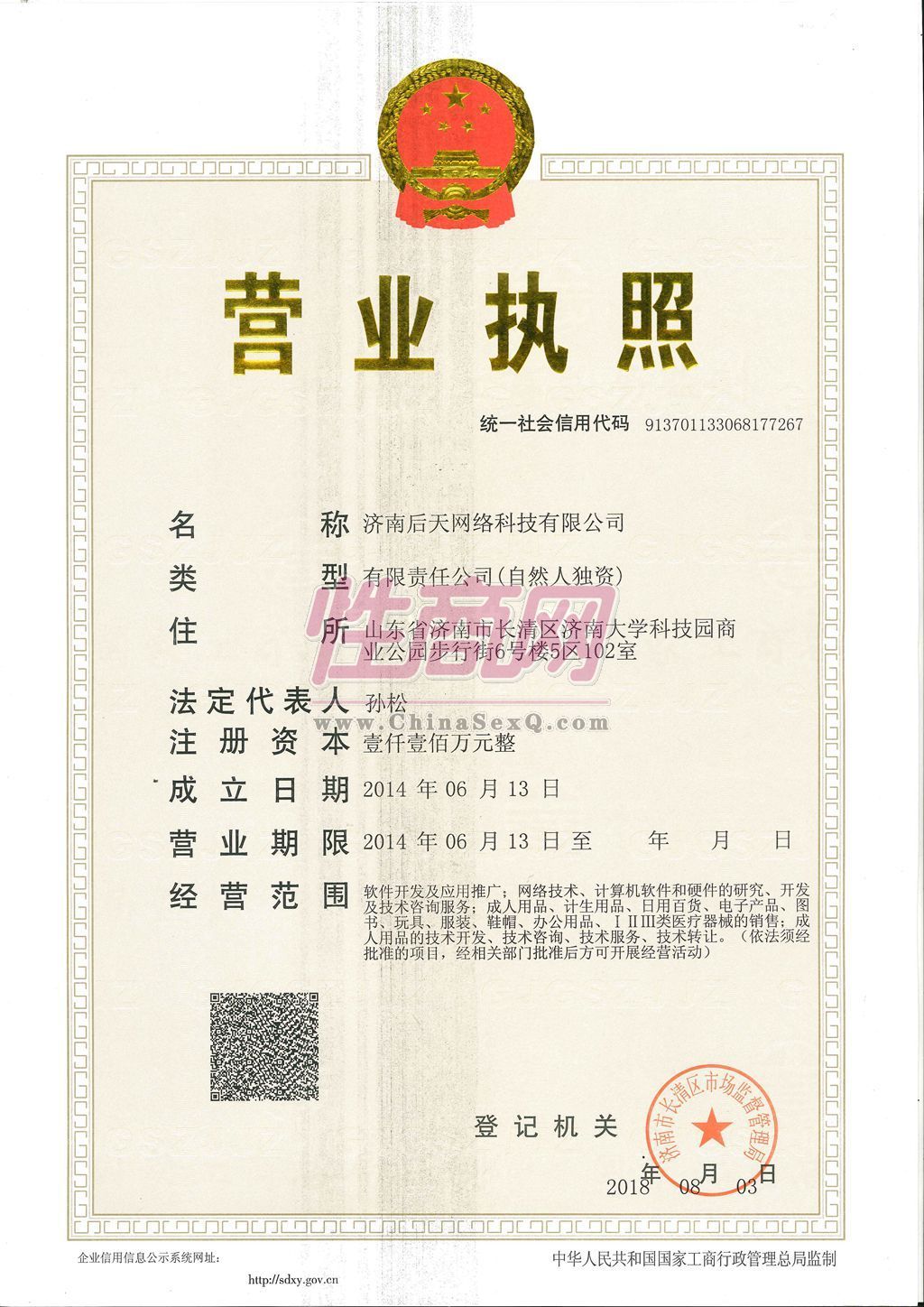 - 公司资质:工商营业执照