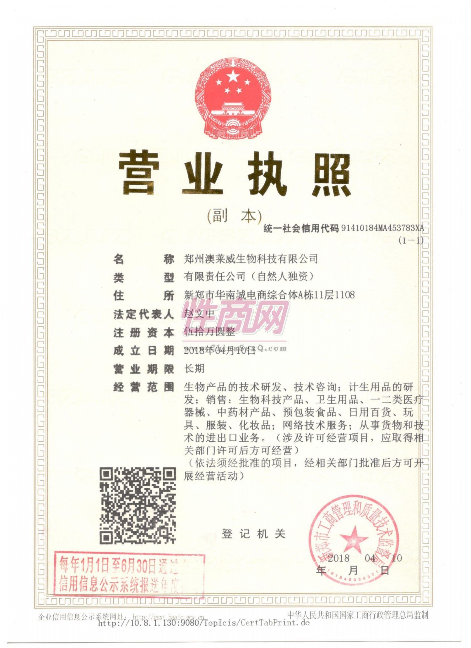 - 公司资质:工商营业执照