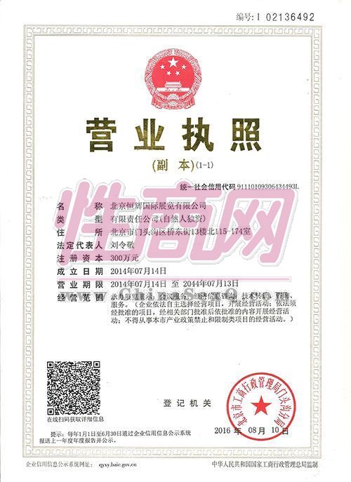 - 公司资质:工商营业执照