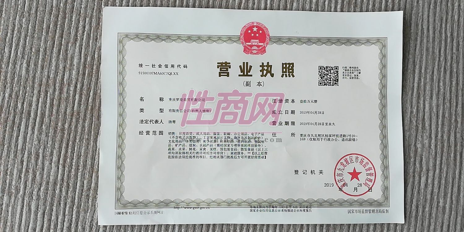 主要是从事成人用品零售兼批发。涵盖:男、女用安全套、飞机杯、振动棒、润滑剂、女用高潮液、情趣内衣、情趣玩具、验孕试纸、验孕笔卡,HIV试纸等情趣成人用品。- 公司名称:重庆梦鹿商贸有限公司