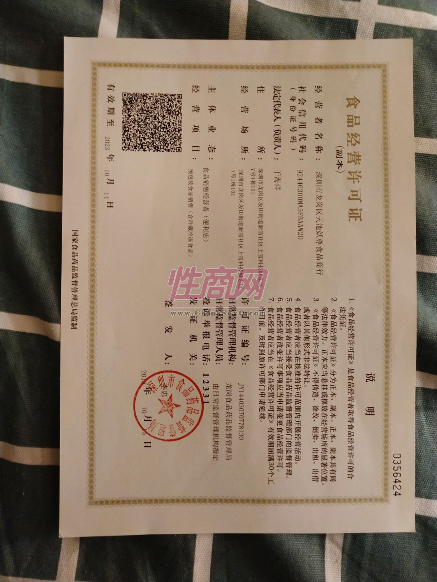 - 公司资质:工商营业执照,食品经营许可证,食品营业许可证