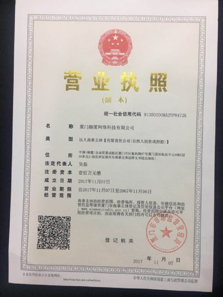 - 公司资质:营业执照