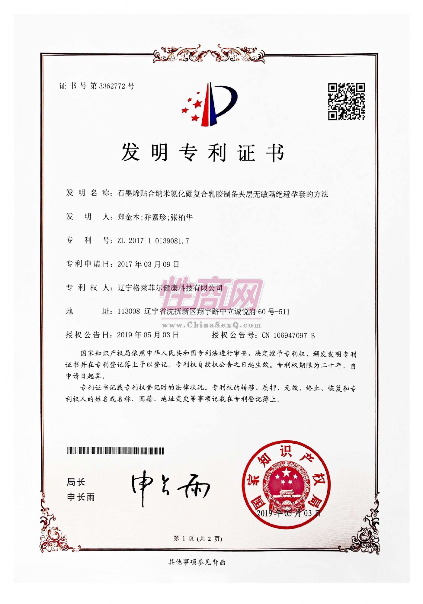 辽宁格莱菲尔健康科技有限公司是一家从事健康领域内的石墨烯及其衍生体低维材料技术开发、技术转让、技术咨询、技术服务,二类医用橡胶制品、非医疗卫生保健用品销售的公司。 石墨烯作为“材料界黑金”,具有高导热、远红外功能等多项有益人类健康的特性。公司秉承关爱女性,给女性更健康的幸福生活的宗旨,致力于开发更多有益女性健康的新型石墨烯产品。 2018年8月,公司的首个石墨烯在医疗器械、生物材料应用产品—石墨烯复合天然乳胶避孕套,在中国取得注册文号;2019年6月,GHTC年产6亿只“格莱菲”石墨烯安全套生产线准备就绪,一场安全套领域以技术推动产品迭代的序幕即刻拉开。- 公司名称:辽宁格莱菲尔健康科技有限公司