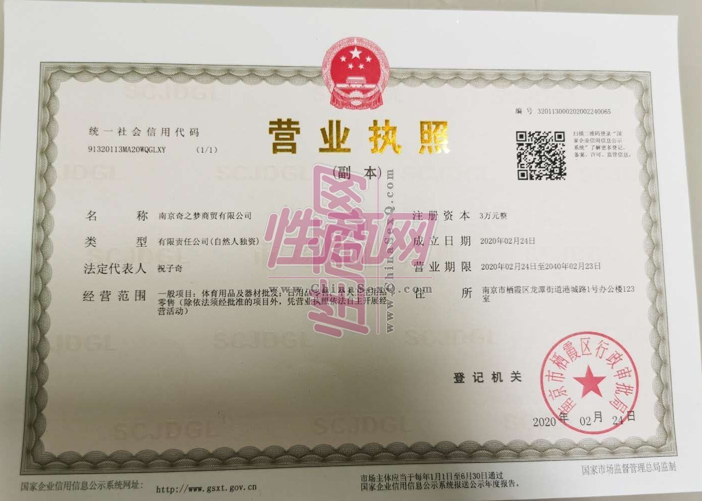 - 公司资质:工商营业执照