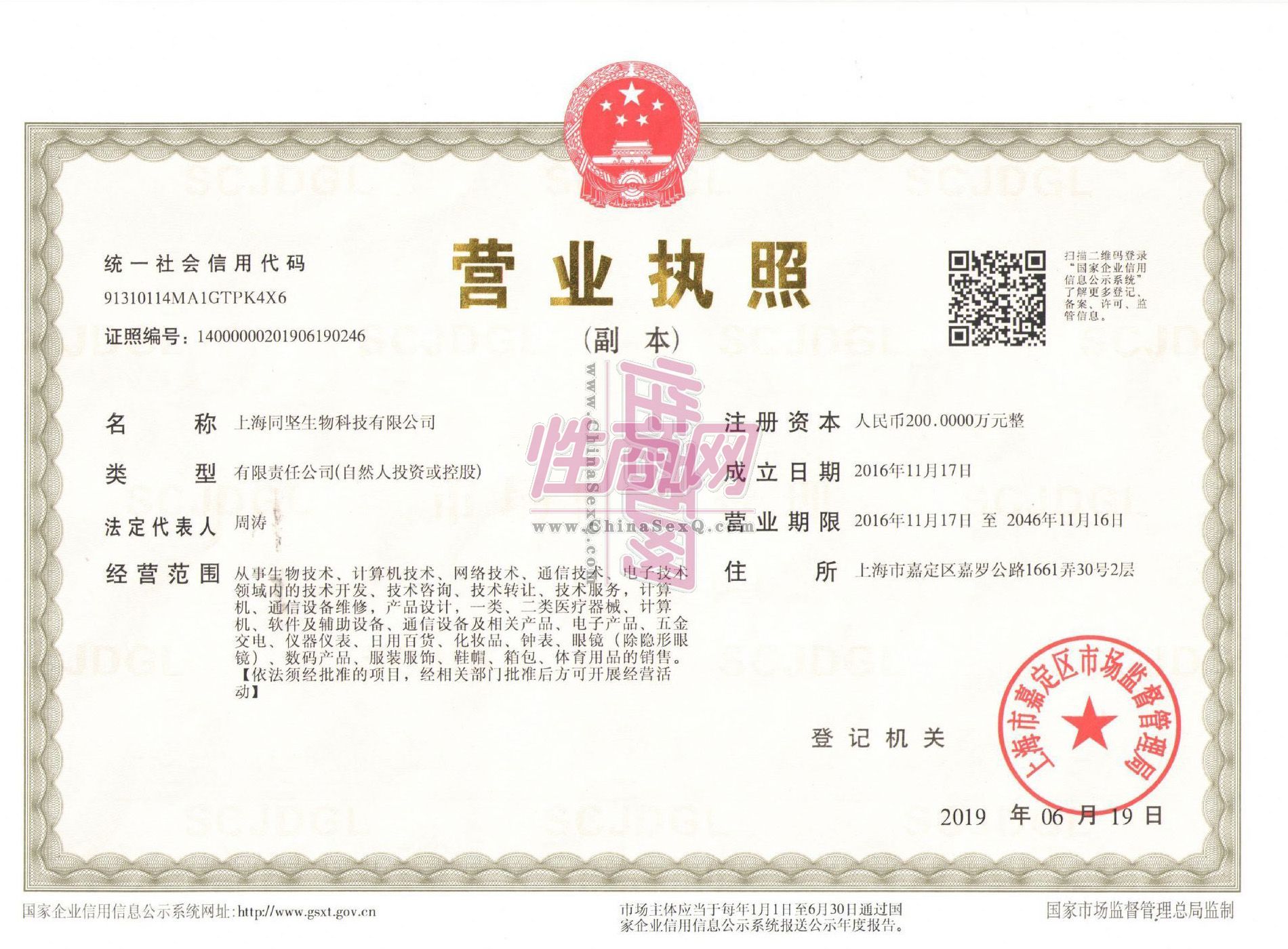 - 公司资质:工商营业执照