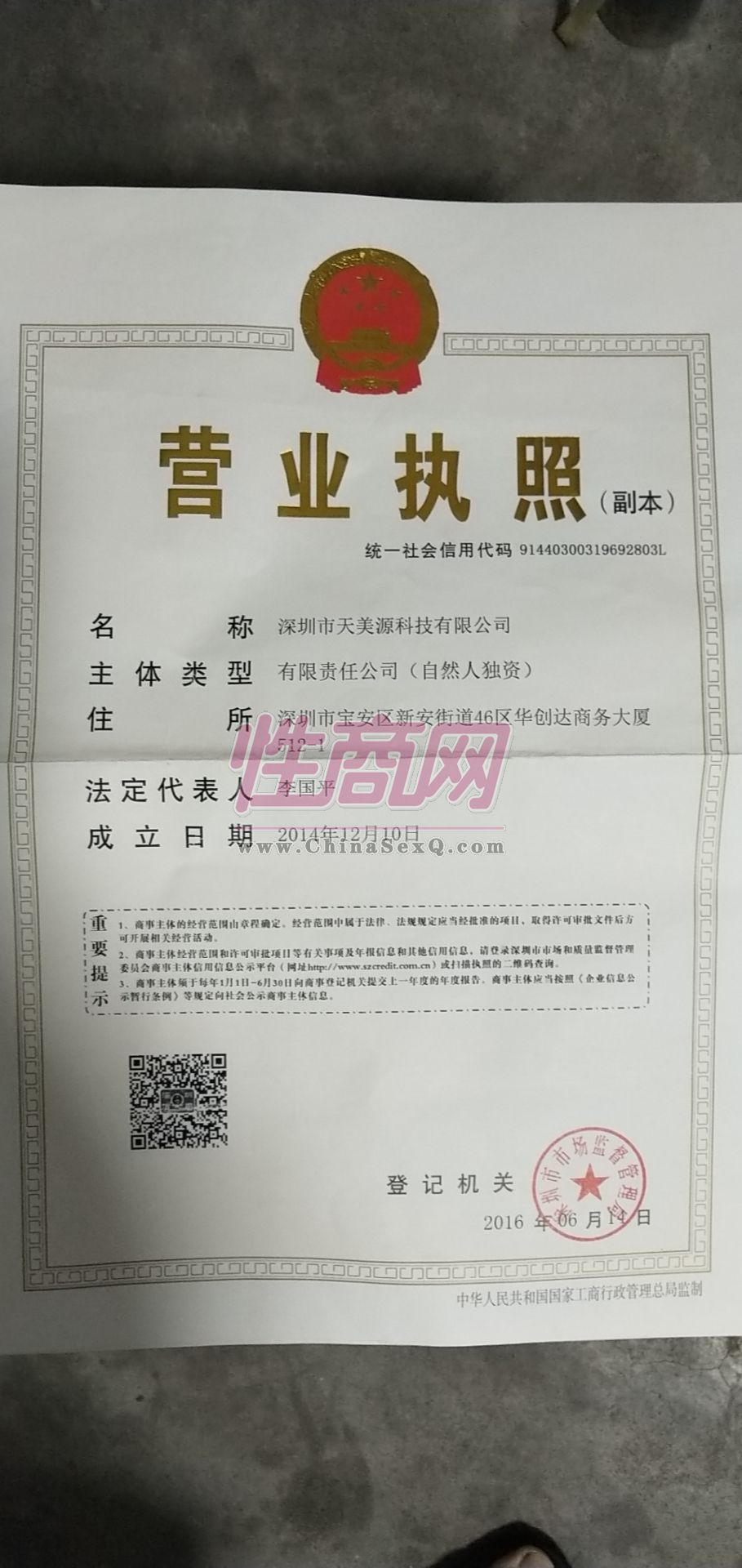 - 公司资质:工商营业执照
