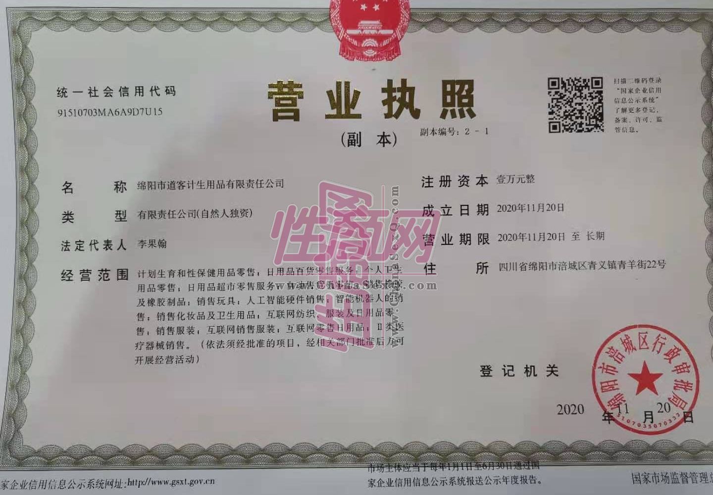 - 公司名称:绵阳市道客计生用品有限责任公司