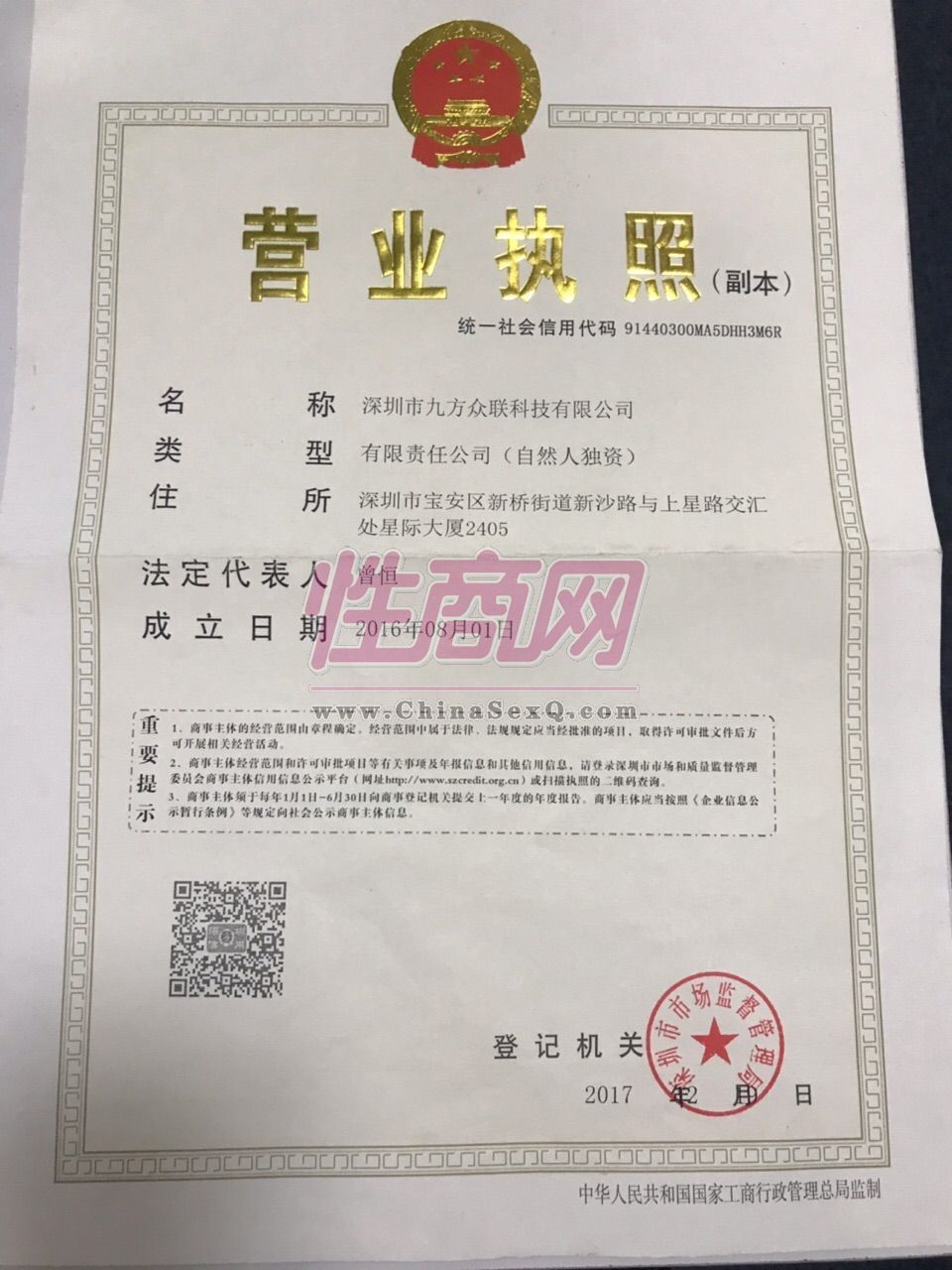 - 公司资质:工商营业执照