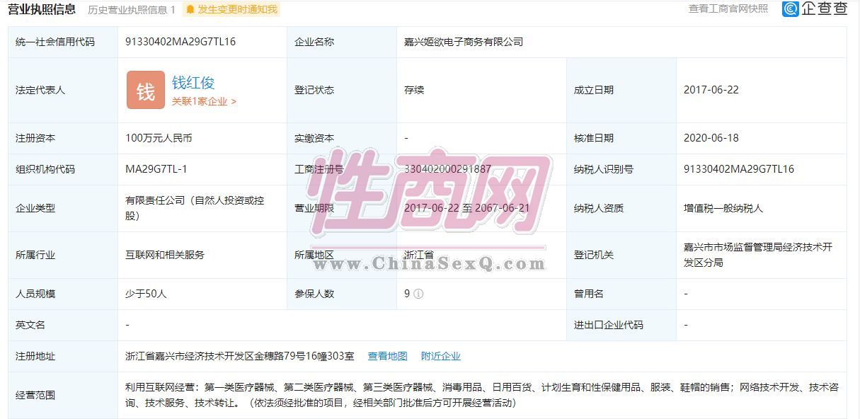 嘉兴姬欲电子商务有限公司经营范围包括利用互联网经营:第一类医疗器械、第二类医疗器械、第三类医疗器械、消毒用品、日用百货、计划生育和保健用品.- 公司名称:嘉兴姬欲电子商务有限公司