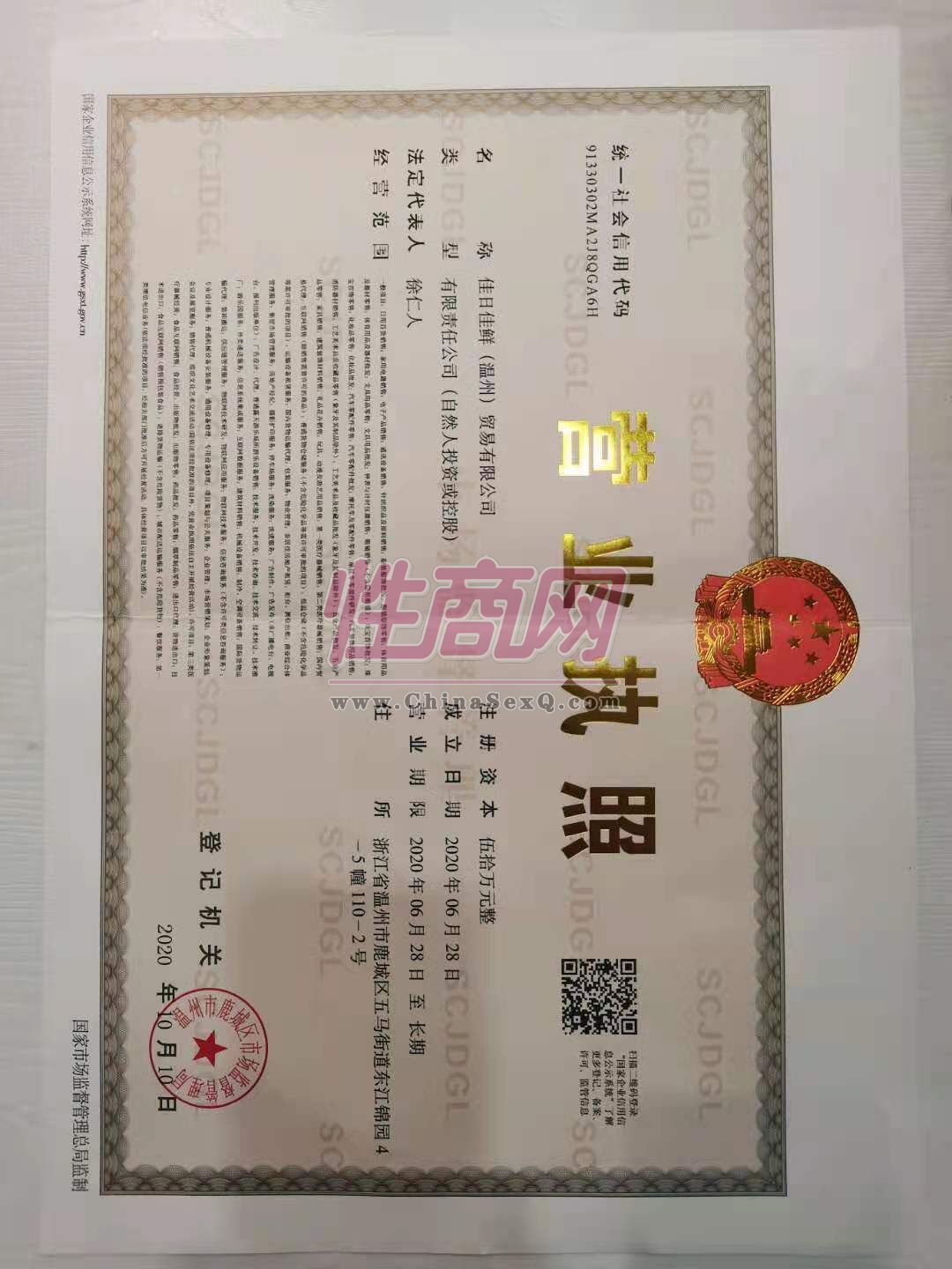 目前做生鲜领域,希望进军情趣用品行业!- 公司名称:佳日佳鲜温州贸易有限公司