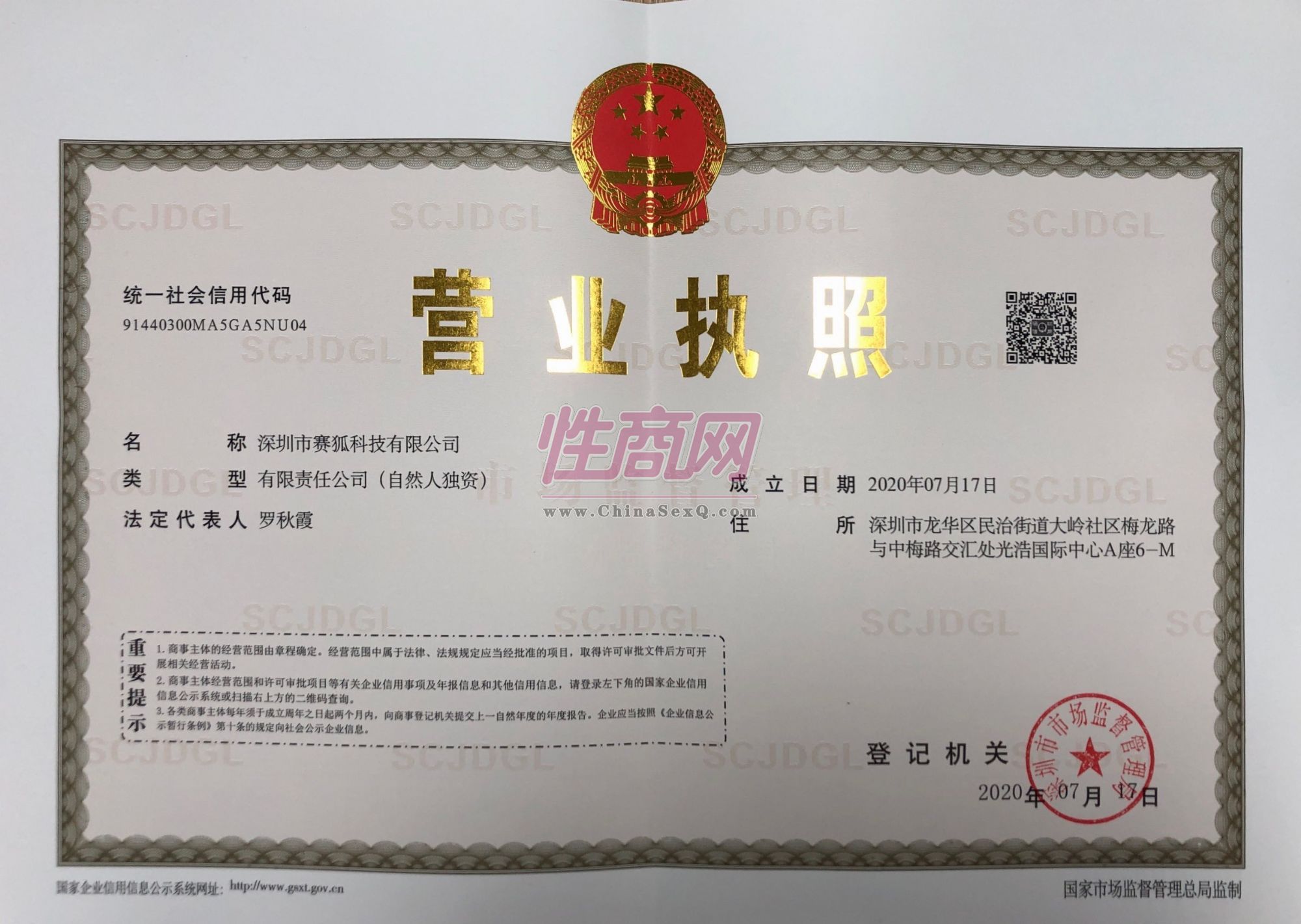 - 公司资质:工商营业执照