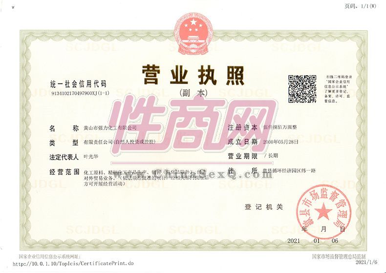 ◎拥有完整、科学的质量管理体系。黄山市强力化工有限公司的诚信、实力和产品质量获得业界的认可。欢迎各界朋友莅临参观、指导和业务洽谈。