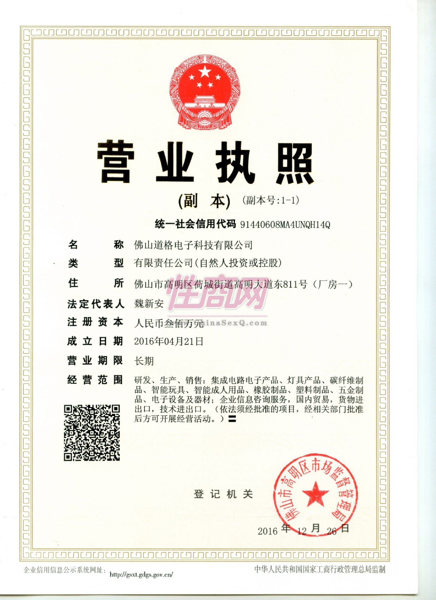 - 公司资质:工商营业执照