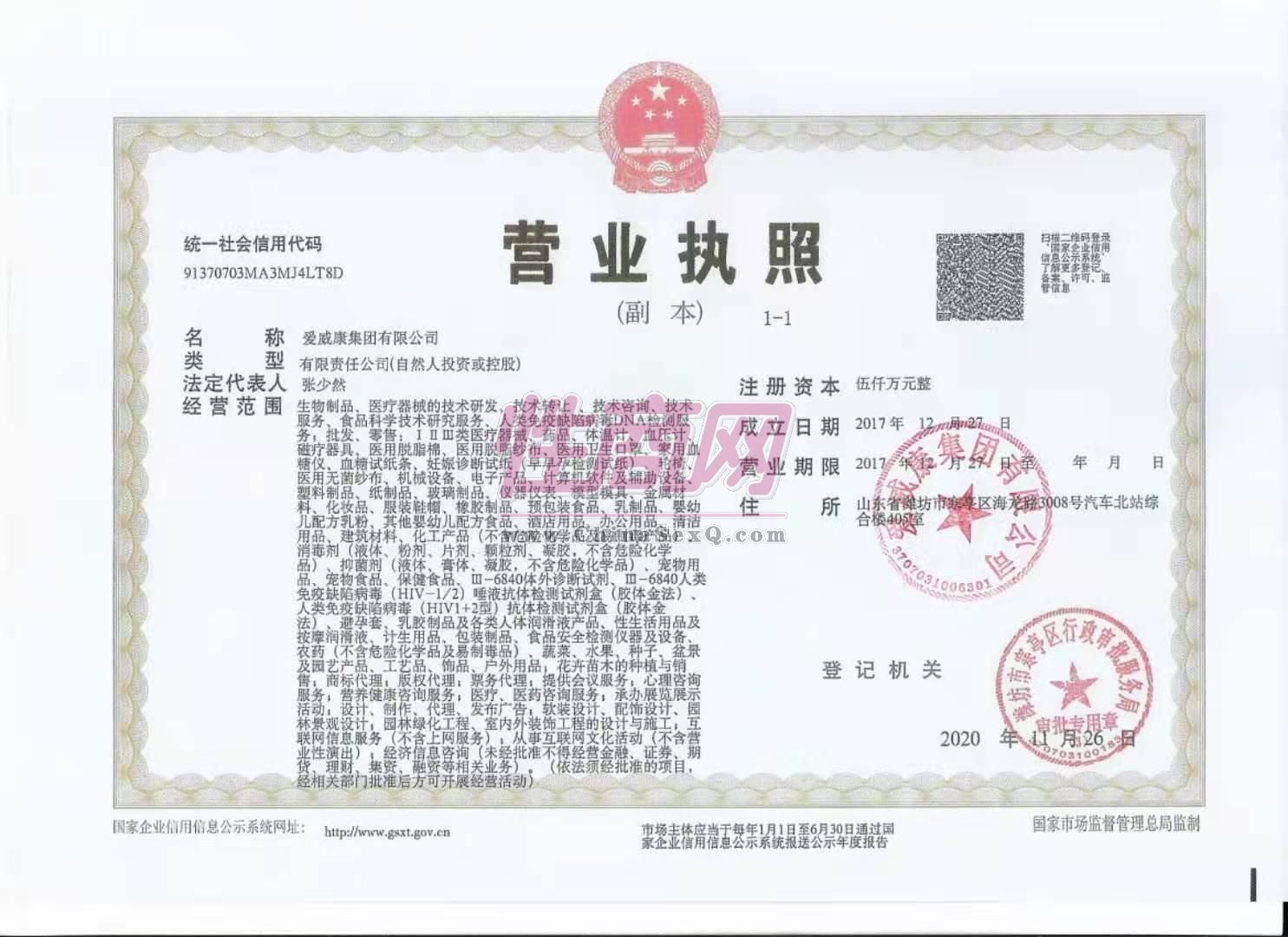 - 公司资质:工商营业执照