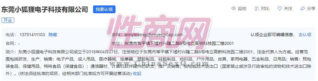 东莞小狐狸电子科技有限公司营范围:研发、生产、销售:电子产品、成人用品、医疗器械、按摩器、塑胶制品、硅胶制品。 公司简介