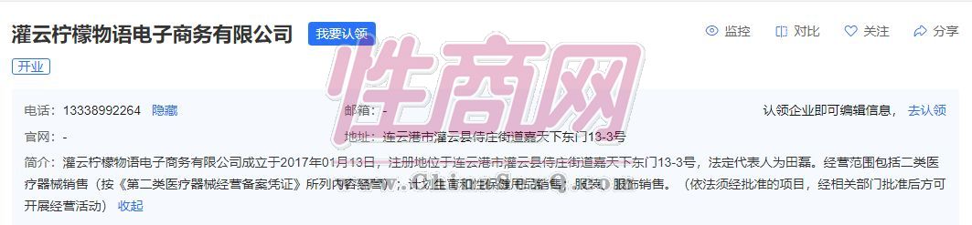灌云柠檬物语电子商务有限公司成立于2017年01月13日,经营范围包括二类医疗器械销售(按《第二类医疗器械经营备案凭证》所列内容经营);计划生育和性保健用品销售;服装、服饰销售。供应产品