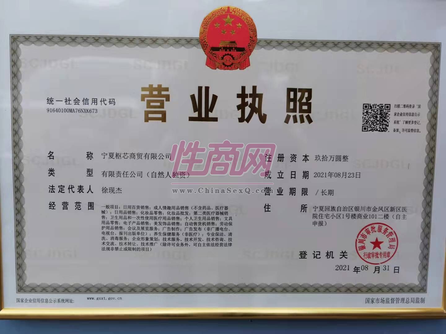 本公司主营各类情趣用品,愿和行业内的伙伴互惠互利,长期合作!- 公司名称:宁夏枢芯商贸有限公司