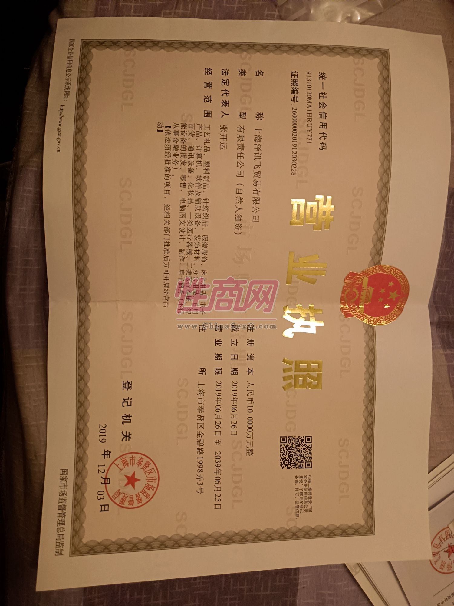 - 公司资质:工商营业执照