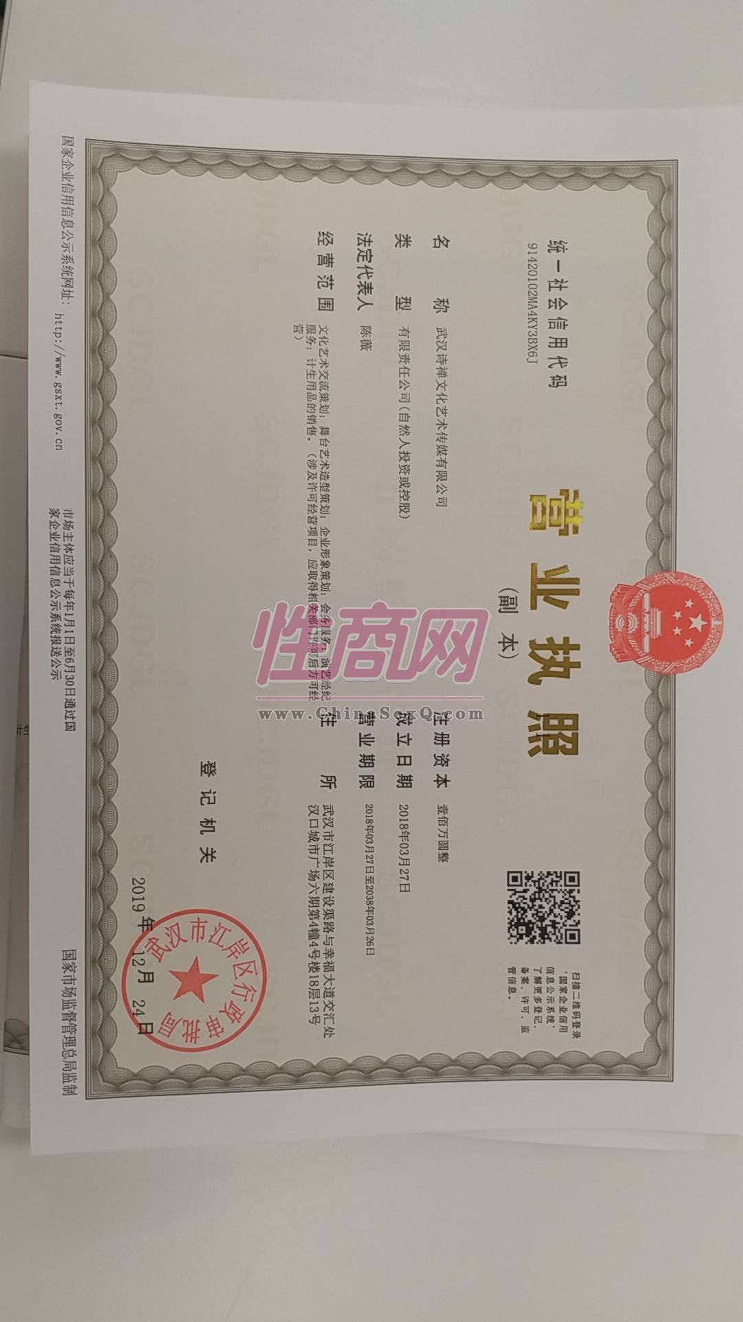 - 公司资质:工商营业执照