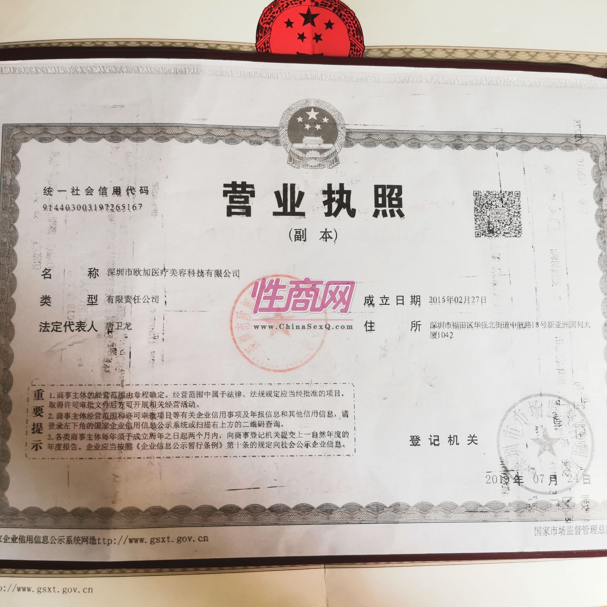 - 公司资质:工商营业执照