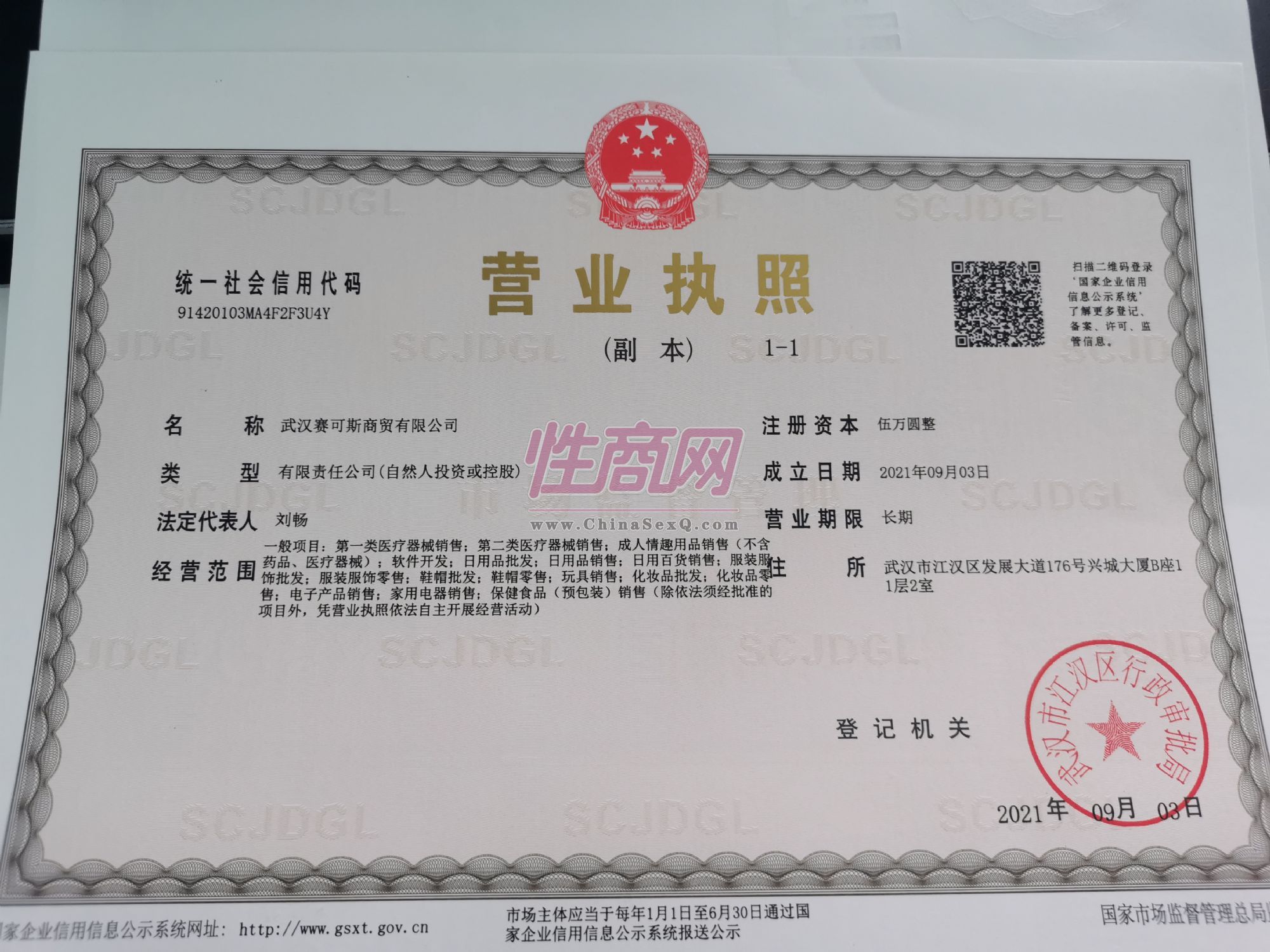 本公司主营各类成人情趣健康用品,合作开放,诚信共赢,欢迎洽谈垂询- 公司名称:武汉赛可斯商贸有限公司