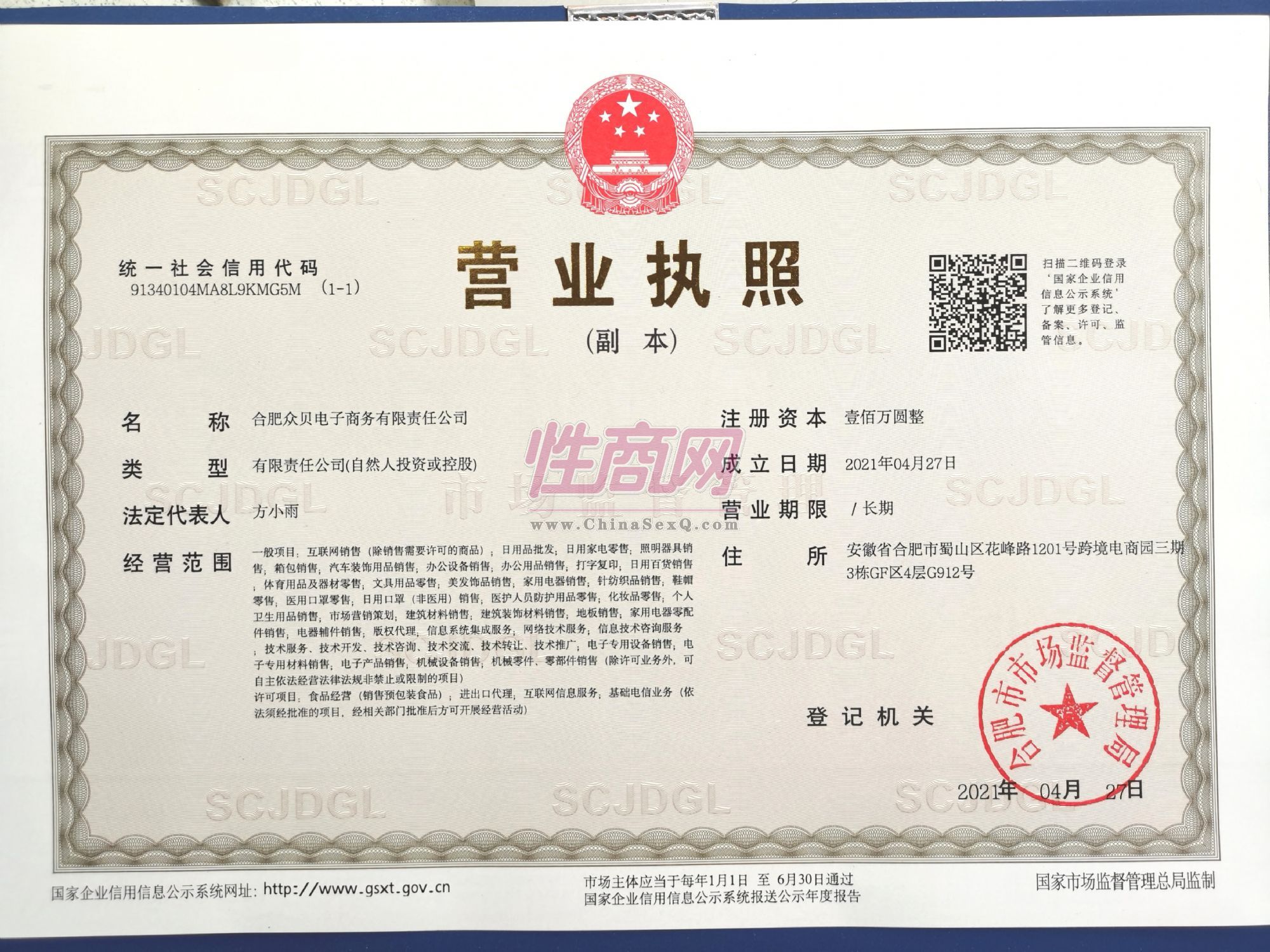 本公司主营各类成人情趣健康用品,合作开放,诚信共赢,欢迎洽谈垂询!- 公司名称:合肥众贝电子商务有限责任公司