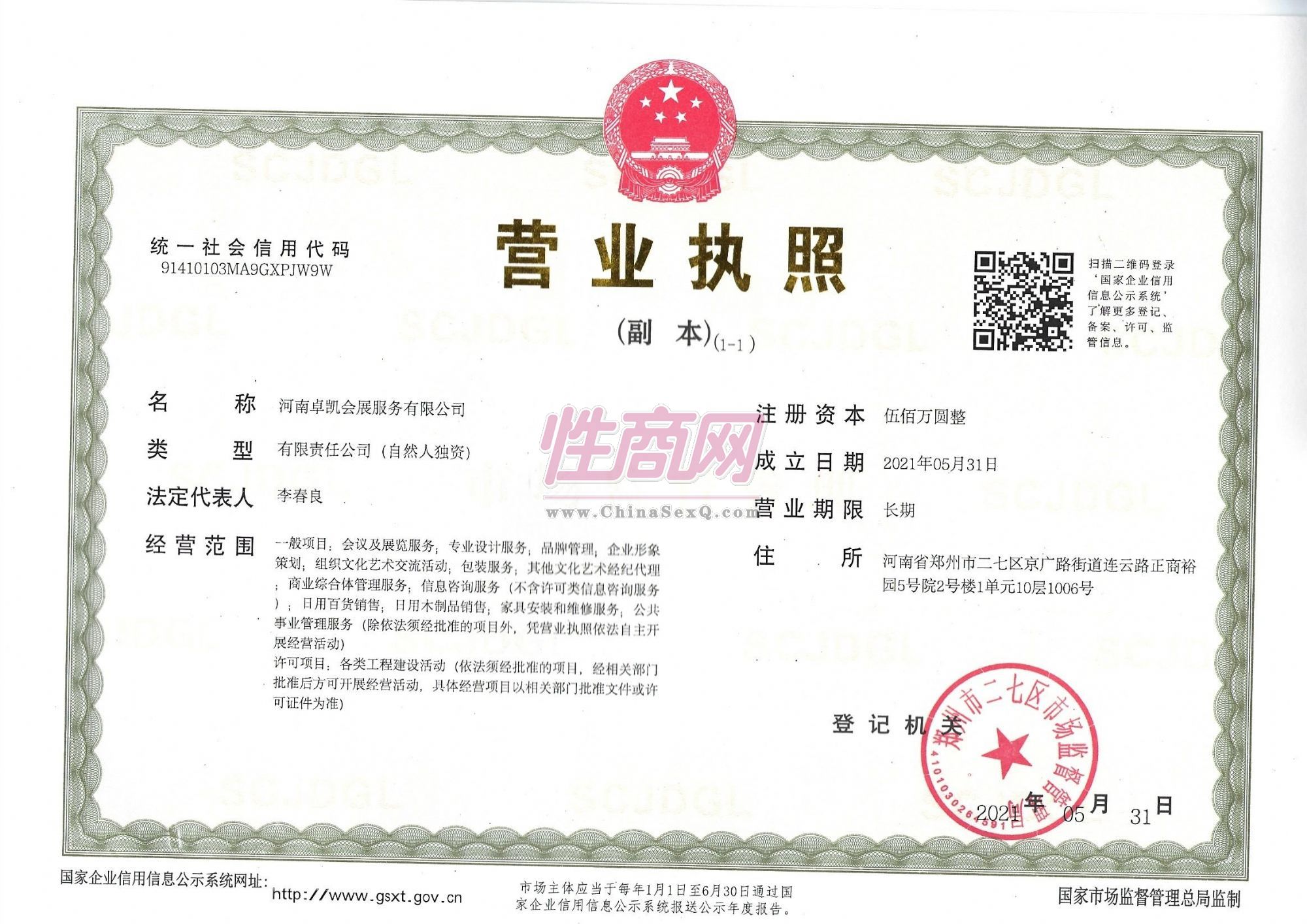 - 公司资质:工商营业执照