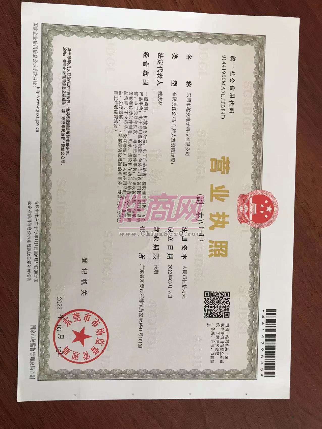 - 公司资质:工商营业执照