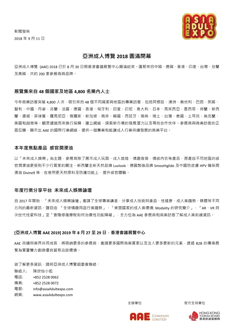 主办单位:亚洲成人博览有限公司(AAE Company Limited)