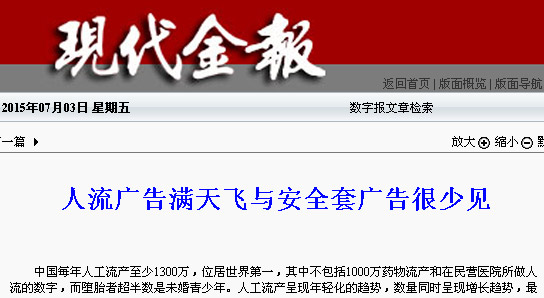 现如今,我国安全套广告依然禁止在电视、户外做广告宣传,但是令人尴尬的是“无痛人流”广告却遍地开花,人流数量逐年大幅上升,而且低龄化趋势愈发严重。为此,众多媒体呼吁有关部门对“安全套广告的禁令”是否应该有所调整,才能符合现在的社会发展趋势,同时对“无痛人流”广告乱象应该加以整治。